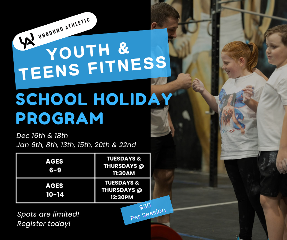 At Unbound Athletic, we’re passionate about helping kids build strength, confidence, and healthy habits. Our Youth Fitness Programs are designed to keep young athletes engaged, social, and constantly improving — from weekly classes to holiday blocks, semi-private sessions, one-on-one coaching, and tailored school programs.
